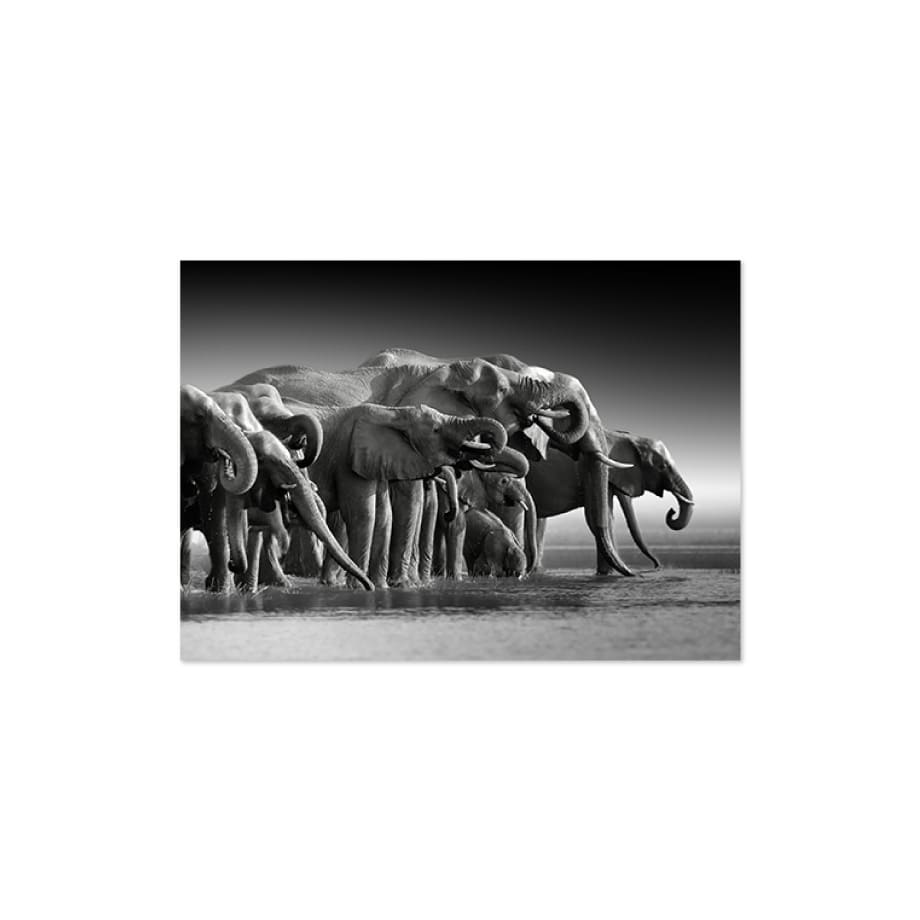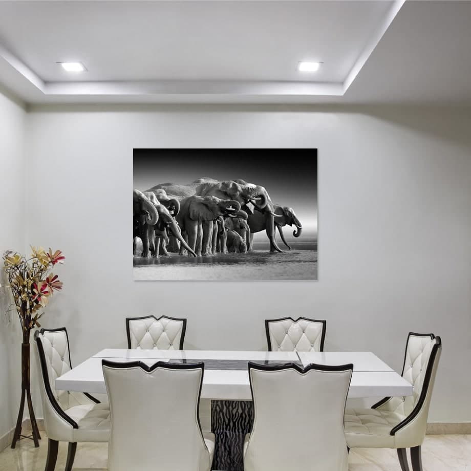 Cuadro de elefantes blanco y negro